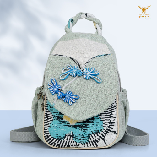 Mochila elegante de algodón y lino con botón de nudo Cheongsam